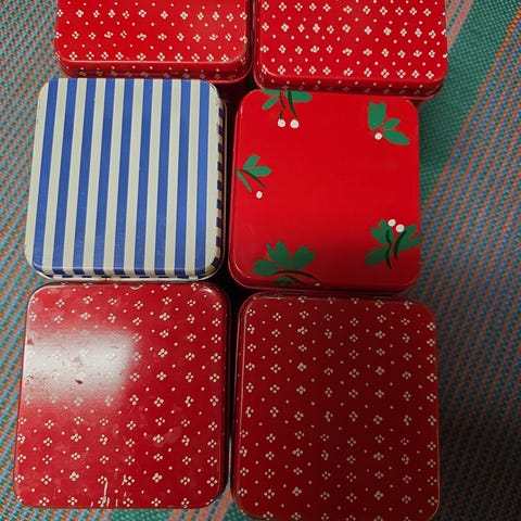 Ostan Marimekon peltipurkin kuvan unikko kuosissa tai beige kaksoset kuosissa.