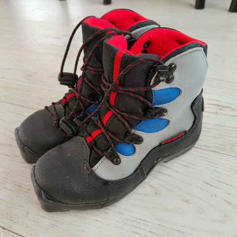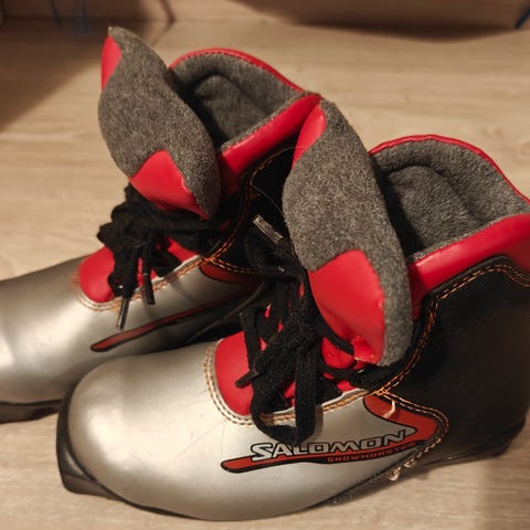 Tästä seuraavalle hiihtäjälle hyvässä kunnossa olevat sns-salomon hiihtomonot. Näihin sopivat sukset löytyy erillisestä ilmoituksesta.