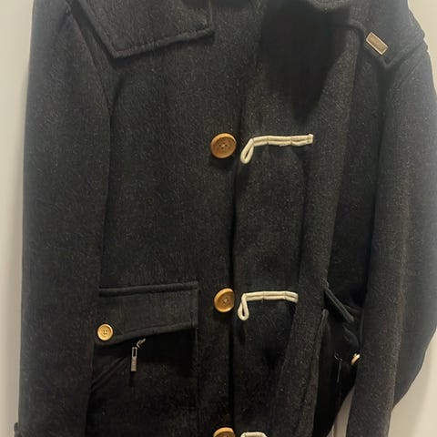 Makia pitkä takki mustassa värissä, valmistettu puuvillasta. Koko XXL, miesten malli. Takissa on huppu ja etutaskut, sopii ulkoiluun ja arkikäyttöön. Likainen ja käytetty. Kevyt vuori