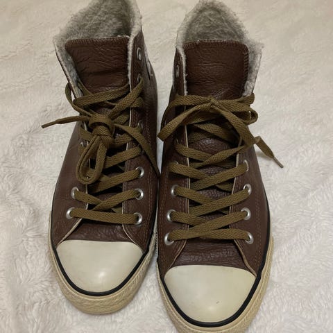 Converse Tennarit nahkaiset tennarit, koko 8, (41,5). Väri punaruskea. Käyttämättömät. Korkea malli.
