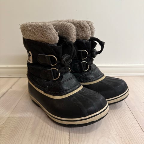 Lämpimät ja vedenpitävät ruskeat Sorel lasten talvikengät, koko 28. Sisämitta n.18cm. Hyvä käytetty kunto.