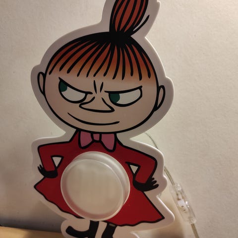 Käyttämätön (vain muovipaketti avattu ja testattu että valo toimii) Moomin yövalaisin on valmistettu valkoisesta muovista. Se on muotoiltu muumi-hahmoksi ja soveltuu lastenhuoneen tai muun tilan yövaloksi. Toimii paristoilla.