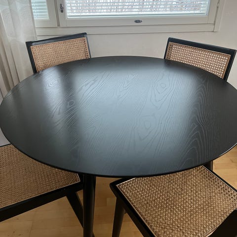 Kuvanmukainen pöytä. Tuolit ei myynnissä.