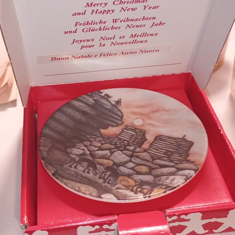 Myydään hyväkuntoinen ja ehjä Arabia tontut kuusen ympärillä seinälautanen. Halkaisija n. 12cm.