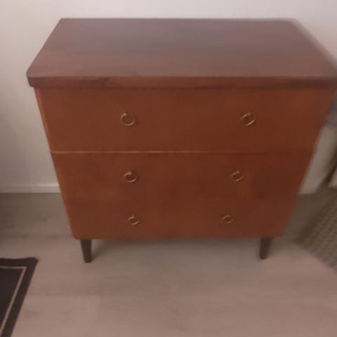 Täysipuinen lipasto. Maalattu Tikkurilan Helmi kalustemaalilla (kiiltävä) ja vetimet vaihdettu (messinkiä).