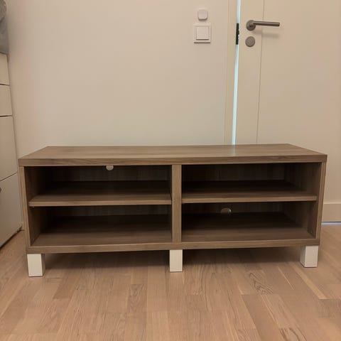 Ikean BESTÅ-tv-taso mattavalkoisella ovella
