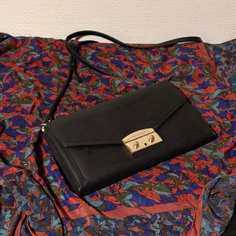 Huom . Alkuperäinen laukku.Kissa naarmutti laukun, ja minä vähän paikkaisin sitä, mutta naarmut näkyvät vielä vähän. Muuten ei oll