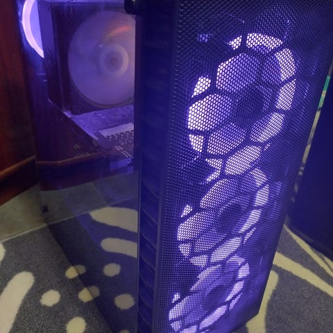 Kone on päivitetty hiljaisemmaksi ja tehokkaammaksi vaihtamalla prosessorijäähdytin Noctuaan. Näytönohjaimena on RXT 3060 Ti 8GB.
