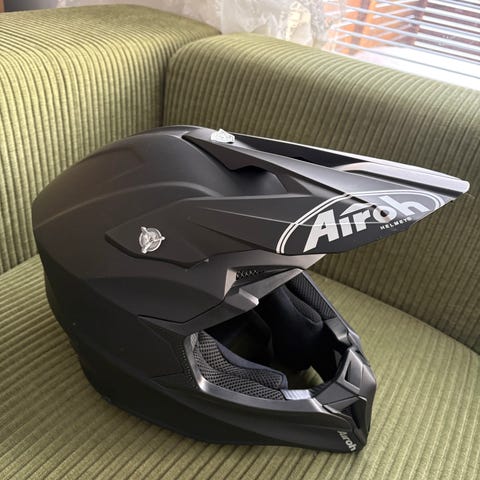 Airoh kypärä moottoripyörään, musta pohjaväri ja punainen kukkakuosi. Kypärässä on kirkas visiiri ja sisäänrakennettu aurinkovisiiri. Soveltuu moottoripyöräilyyn.