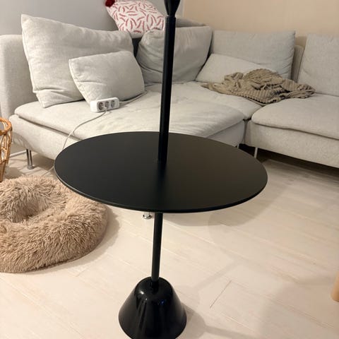 Ferm Living -merkin sivupöytä epäsymmetrisellä muotoilulla modernilla ilmaisulla. Valmistettu lujatekoisesta jauhemaalatusta teräksestä hillityllä värillä ja kahdella hyllyllä helppoa säilyttämistä varten.