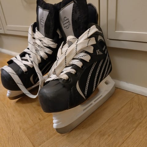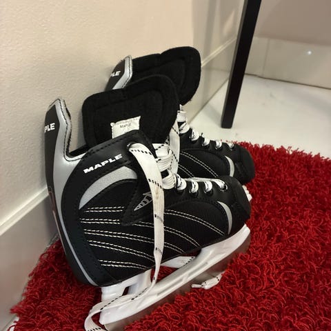 Maplen lasten luistimet, koko 29. Väri musta ja valkoinen.