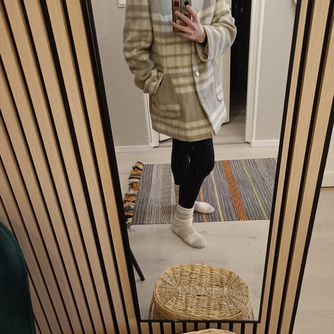 Myydään värikäs villakangastakki. Värit ei ihan noin kirkkaat ole miltä kuvista näyttää.