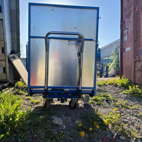 Myydään tukeva, teräsrunkoinen kuljetusvaunu. Käytetty liikennemerkkien siirtoon ja varastointiin.