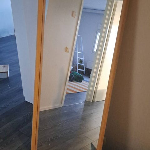 130 cm korkea ja 40 cm leveä peili. Ei naarmuja yms. Takana kaksi kiinnityslenkkiä