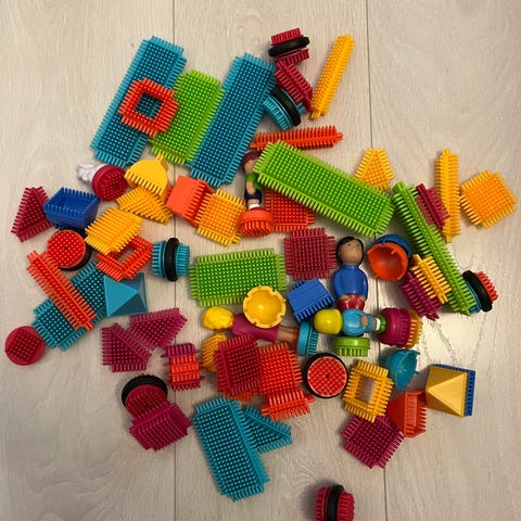Iso kasa (noin 230 osaa) Nopper -rakennuspalikoita (ns. Nopperit) seuraavalle pienelle.
