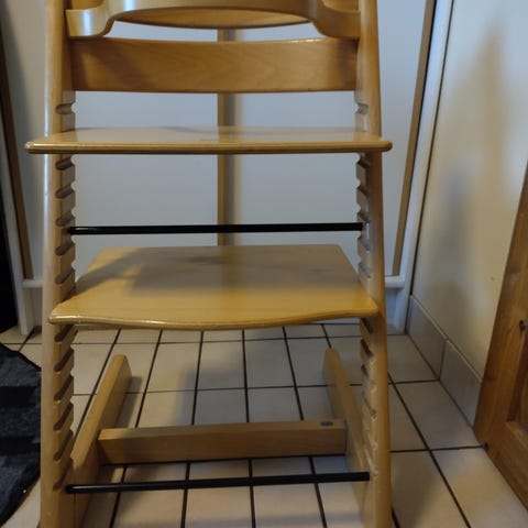 Stokken tripp trapp syöttötuoli. Tuolin maalipinnassa kulumaa, mutta yleisilmeeltä edelleen ihan siisti.