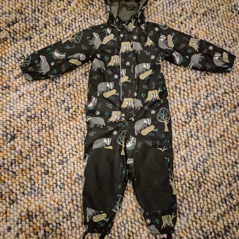 Jonathan kurahaalari fleecevuorella. Koko 104. Muuten oikein siisti kunto paitsi takapuolen kohdalla kankaassa kulumaa mutta mielestäni tämä on vain värin kulumaa, ei reikiä tms. Lisäksi toinen jalkalenksu puuttuu ja myös toinen kiinnitysnappi siitä irronnut.