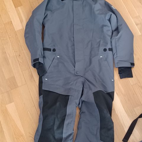 Hyvässä kunnossa, vetoketjut ehjät, vähän likaa lahkeessa ja leuassa, luultavasti lähtevät pyyhkimällä.