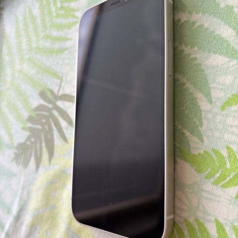 Apple iPhone 12 Mini 64 GB sininen. Puhelimessa on 64 gigatavua tallennustilaa ja sininen väritys. Laite on varustettu kahdella takakameralla. Akun kapasiteetti on 76 prosenttia.