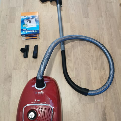 Bosch Serie 4 pölynimuri punainen. Varustettu säädettävällä imuteholla ja kätevällä kantokahvalla. Sisältää letkun ja lisävarusteena yksi suulake sekä kaksi käyttämätöntä pölypussia. Soveltuu kotikäyttöön. Myydään tarpeettomana.