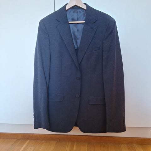 Jäi käyttämättä Calvin Klein miesten musta puku, koko XL, tuuma 54, valmistettu villasta. Puku sisältää takin ja housut. Puvussa ohuet pystyraidat, jotka kuvasta ei ehkä näy.