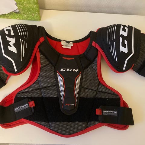 Myydään CCM 9060 SR, hartiasuoja 170-178cm pituiselle. Hyväkuntoiset, tarrat pitää.