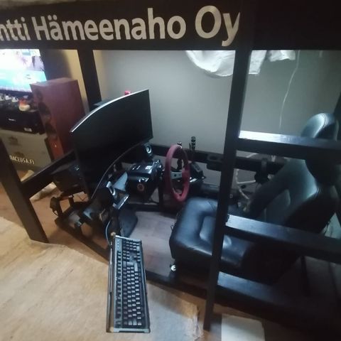 Itse rakensin simulaattori rigin mikä jäänyt yli ja nyt vie vaan varastossa tilaa. Rakensin mahdollisimman tukevan ja itsellä oli moza r9 ratti base ja pysy tukevana. Tällähetkellä varastossa osissa mutta saa ruuvit ja tsydeemit mukaan. Ja tosiaan pelkkä puurigi, penkki ja muut kuvissa näkyvät ei kuulu kauppaan. Hinta ei kiveen hakattu mutta tuo puu materiaalikaan ei nykypäivänä ilmasta ole…😅