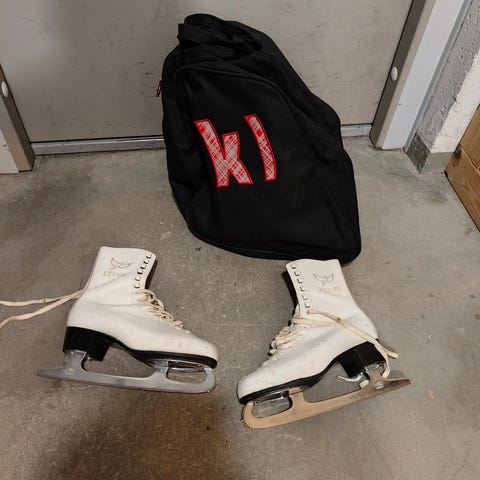 Lähes uudenveroiset luistimet karvavuorella Stadiumista. Käytetty kaksi kertaa ja todettu liian pieniksi.