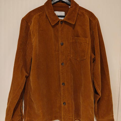 Itselle liian iso ruskea samettikauluspaita myyntiin.