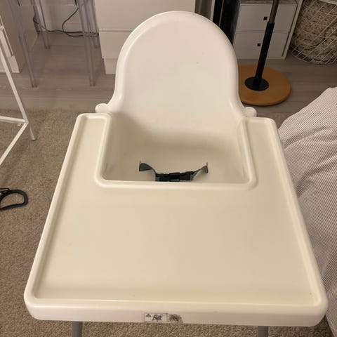 IKEA Antilop lasten tuoli, väri valkoinen. Tuolissa on muovinen rakenne ja se on suunniteltu lapsille käytettäväksi.