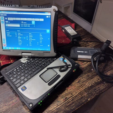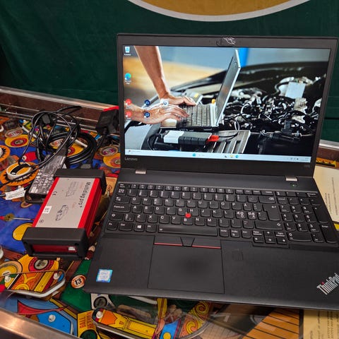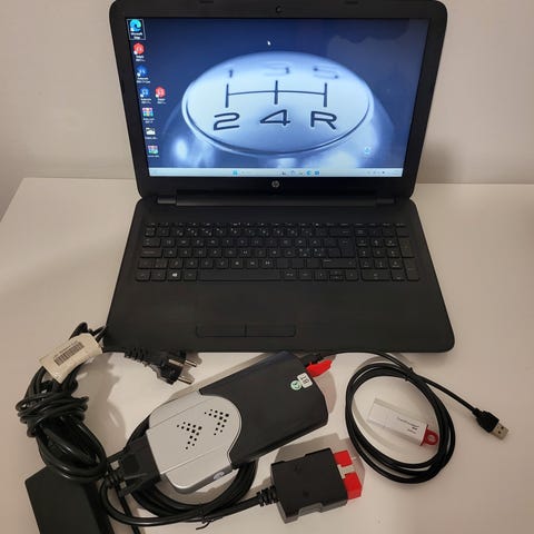 Dell läppäri missä Dephi koodin luku ohjelma 2015 sekä väli palikka. Toimii. Akku ei ota läppärissä virtaa vastaan.