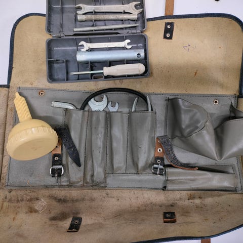 Myydään vuoden 1990 kanttilada 1500 / 2105 mukana tullut alkuperäinen Neusvostoliitto -valmisteinen työkalusarja . Jäänyt nähtävästi ainakin osittain käyttämättä. Toimitetaan hyvin armeijahenkisessä vihreänharmaassa keinonahkalaukussa, pituus noin 58cm. Työkaluissa USSR -tekstit. Sisältää mm. kiintolenkki , kiintoavain , pihdit , tupakansytytin valaisin , rengasilmanpainemittari , pumppu , venäjänkielinen luettelo. 1200 1300 työ kalu työkaluja työkalut alkuperäiset 80-luku 80-luvun korjaus sarja työkalu meisseli pulttiavain laatikko boxi ladan venäjä venäläinen neuvostoliitto samara 1500 2105 2107