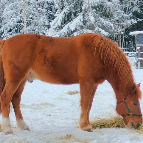 Ruuna Barley's Arnie on vuotikkaana ajolle opetettu, mutta nyt pelkää kärryjä, joten tarvis vähän uudelleen opettelua!