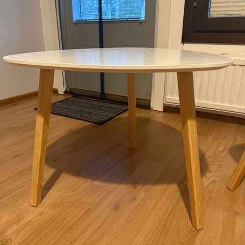 Jysk Nybo sivupöydät. Isomman halkaisija 55 cm ja korkeus 45 cm. Pienemmän halkaisija 40 cm ja korkeus 40 cm.