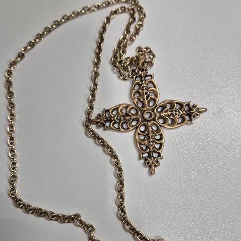Kaksi pronssin väristä korua, joiden molempien takana teksti Biblia 1776. Isommassa korussa ketjun väri mielestäni enemmän hopeinen kuin pronssinen, mutta minulla on ylimääräisenä saman pituinen pronssin värinen lukollinen ketju jonka saa mukaan, jos haluaa vaihtaa siihen!
