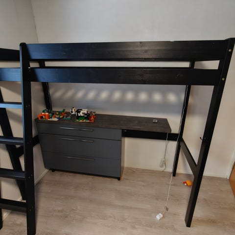 Valkoinen parvisänky lastenhuoneeseen. Sänky on suunniteltu säästämään tilaa ja soveltuu lasten käyttöön. Kokopuu, painoraja 100kg.