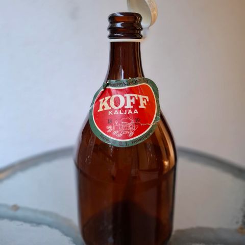 Koff ilmalla täytettävä mainospullo, 100cm korkea ja 30cm leveä, 90-luvun koristepullo, korkissa lenksu josta saa vaikka kattoon roikkumaan. Lähettäminen onnistuu