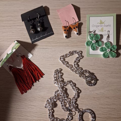 Erilaisia hyväkuntoisia käytössä olleita korvakoruja edullisesti.