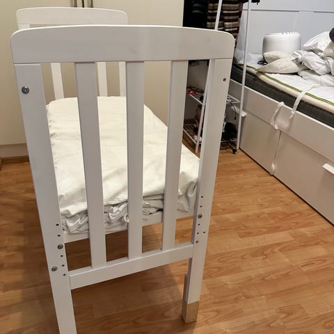 Myydään pinnasänky. Jatkettava sänky, laitoja ei saa alas. Syvyys säädeltävissä 88-n.160cm. Tarvitsee ruuvienkiristämistä, heiluu jonkin verran.