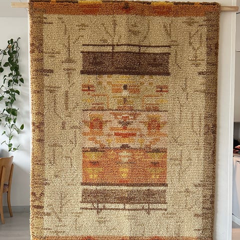 Margareta Ahlstedt-Willandt, ryijy, "Kevätkukkia". Siistikuntoinen.