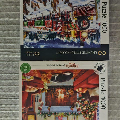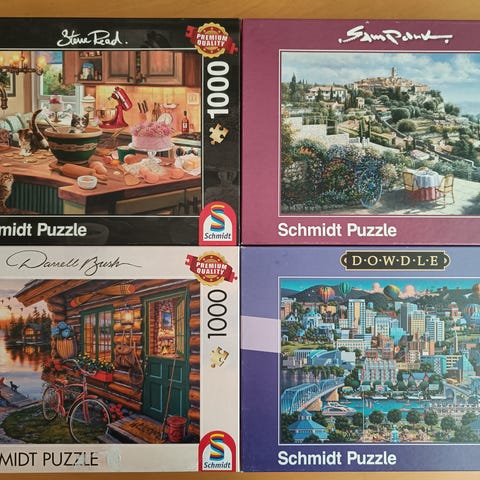 Myydään 2 kpl Schmidtin jouluaiheisia 1000 palan palapelejä yhteishintaan 15€. Kaikki palat tallessa ja kunnossa molemmissa peleissä.