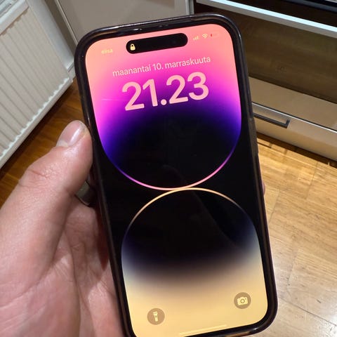 Apple iPhone 14 Pro -puhelin, jossa 128 GB tallennustila. Mukana alkuperäiset lisävarusteet sekä extraa - kuten laturi, kuulokkeet, SIM-kortin poistotyökalu ja käyttöohjeet.