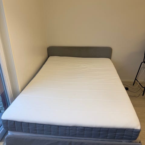 Hyväkuntoinen ja jämäkkä 140cm leveä runkopatjasänky, jossa musta verhoilu ja krominväriset jalat. Mukaan paksu petauspatja. Siisti kunto ja jousitus hyvässä kunnossa, napakka nukkumistuntuma, hyvä painavalle nukkujalle. Myydään pois koska tarve leveämmälle parisängylle.