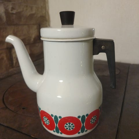 Punainen emali kahvipannu