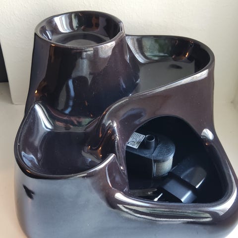 Kissan vesilähde. Käytetty, mutta toimii. Mukaan käyttämätön vaihtofiltteri ja vaihtopumppu (pumppu vaihdettu muutenkin jo vuoden sisään). Vaihdoin automaattimalliin.