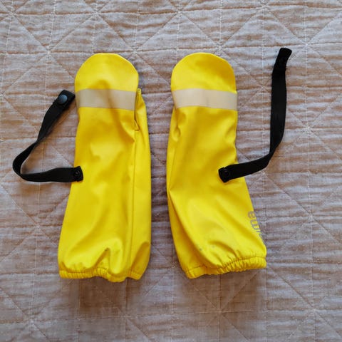 Reiman ja Didriksonsin hanskat. Didriksonissa paksu vuori vain hanskaosassa, Reimassa myös varressa. Reiman rukkasissa vetoketju, joka helpottaa pukemista.