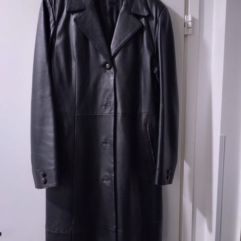 Vyö vyötäröllä soljella,napit edessä ja hihansuissa. Halkio helmassa selässä