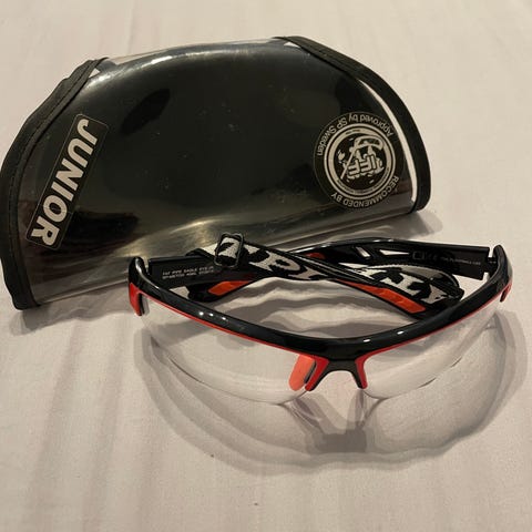 Hyvässä kunnossa olevat salibandy suojalasit. Harrastuksesta loppui into, joten ei ehditty käyttää paljoa.
