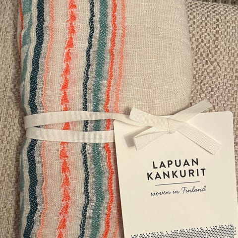 Lapuan Kankurien pellavahuivi, 42,5 x 220 cm. Ei pakkausta. Käyttämätön.