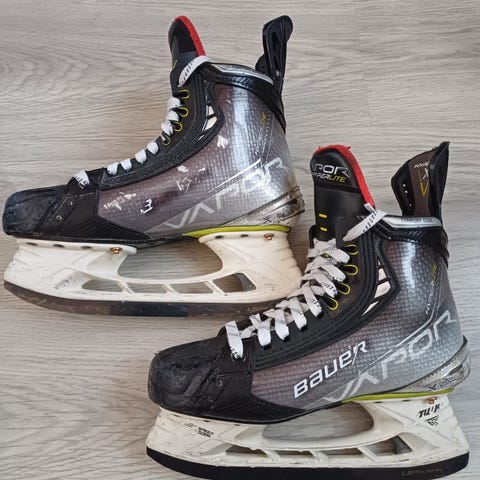 Muutaman kuukauden käytössä olleet, Canadassa tehdyt Bauer Hyperlite 2 pro custom luistimet tyylikkäällä gun metal värityksellä.Väri,etuläpät,nauhakuja,kengän jäykkyys,terämuovit customoitu.Näitä ei kaupan hyllystä löydy.Uusien hinta noin 1200e.